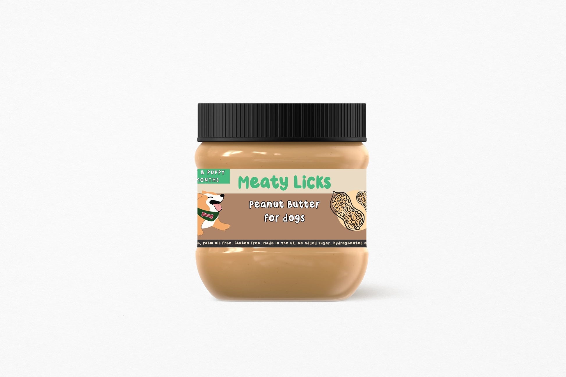 Pot de beurre de cacahuète naturel, végétalien et sans gluten, conçu spécialement pour les chiens. C'est une friandise idéale pour les tapis de léchage, les jouets à garnir ou comme petit plaisir.
