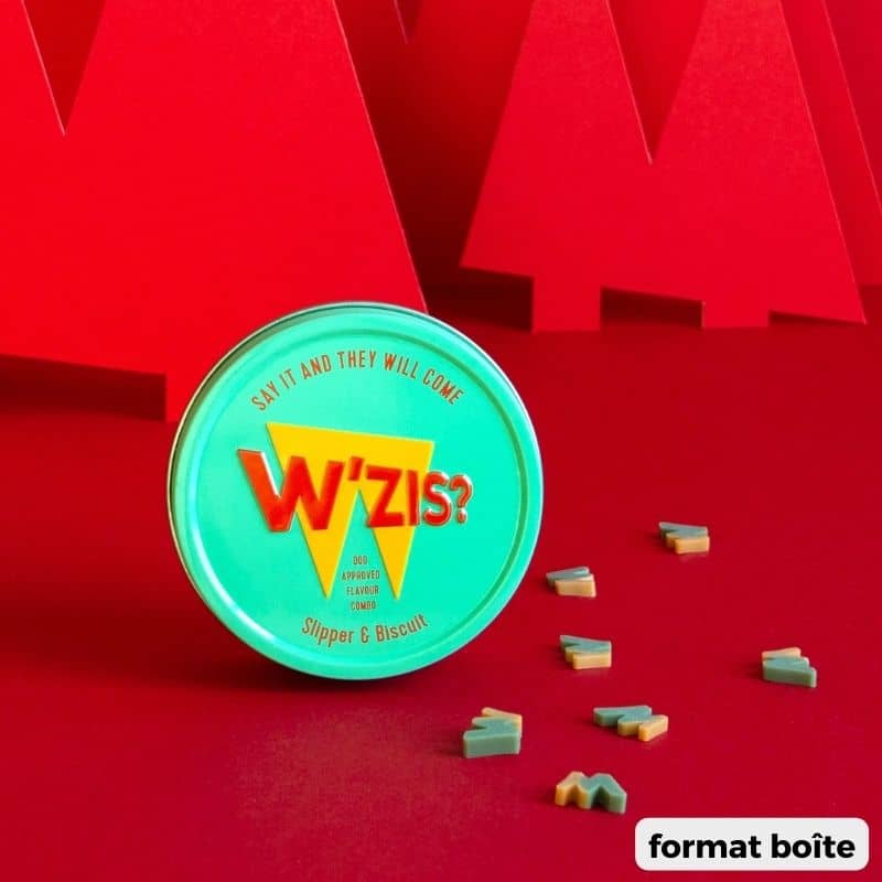 Ces friandises végétales "Slipper & Biscuit" de la marque W'zis sont sans céréales, et ont une texture volontairement ferme et une forme de W pour prolonger le temps de consommation et favoriser le nettoyage des dents.
