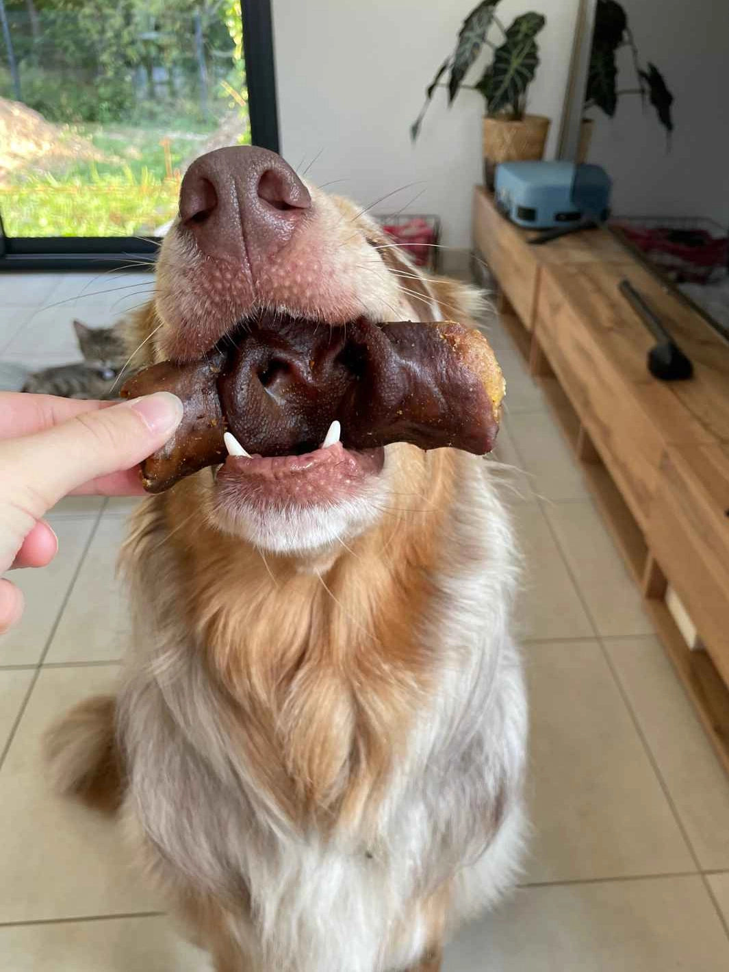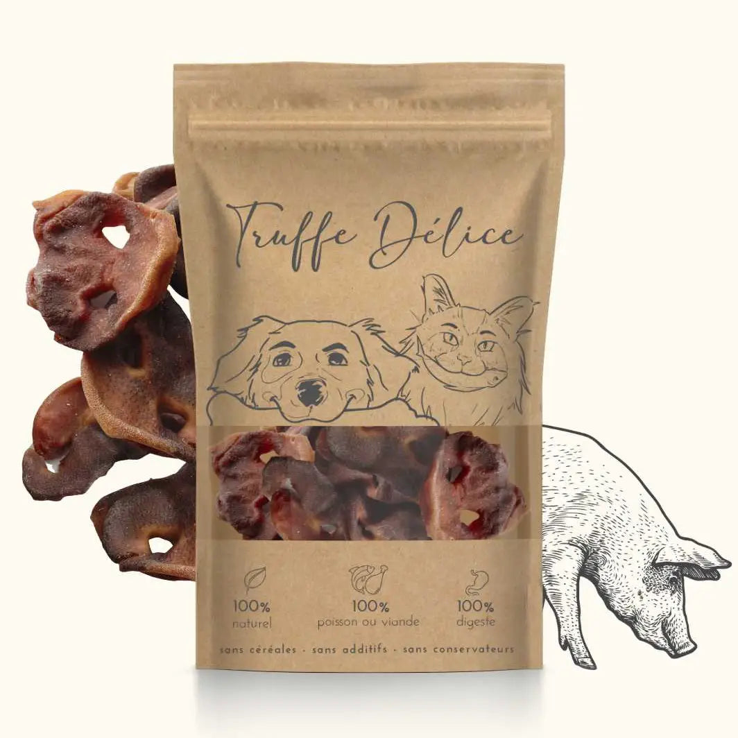 Les groins de cochon appelés aussi museaux de porc, sont des friandises naturellement savoureuses. Ces collations sont cuites et séchées à l'air afin de conserver leur qualité nutritionnelle ainsi que les saveurs que les chiens et les chats adorent.