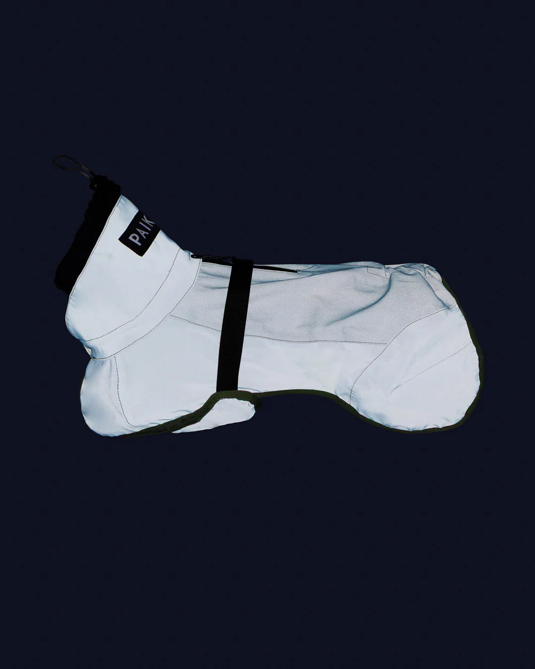 Soyez prêt à affronter toutes les conditions météorologiques avec l'imperméable réfléchissant PAIKKA. Son matériau réfléchissant emblématique garantit visibilité et sécurité lors de vos aventures en plein air, tandis que son tissu 100 % imperméable, avec toutes les coutures étanchées, garde votre chien au sec. Ses multiples points de réglage assurent un ajustement parfait pour tous les chiens.
