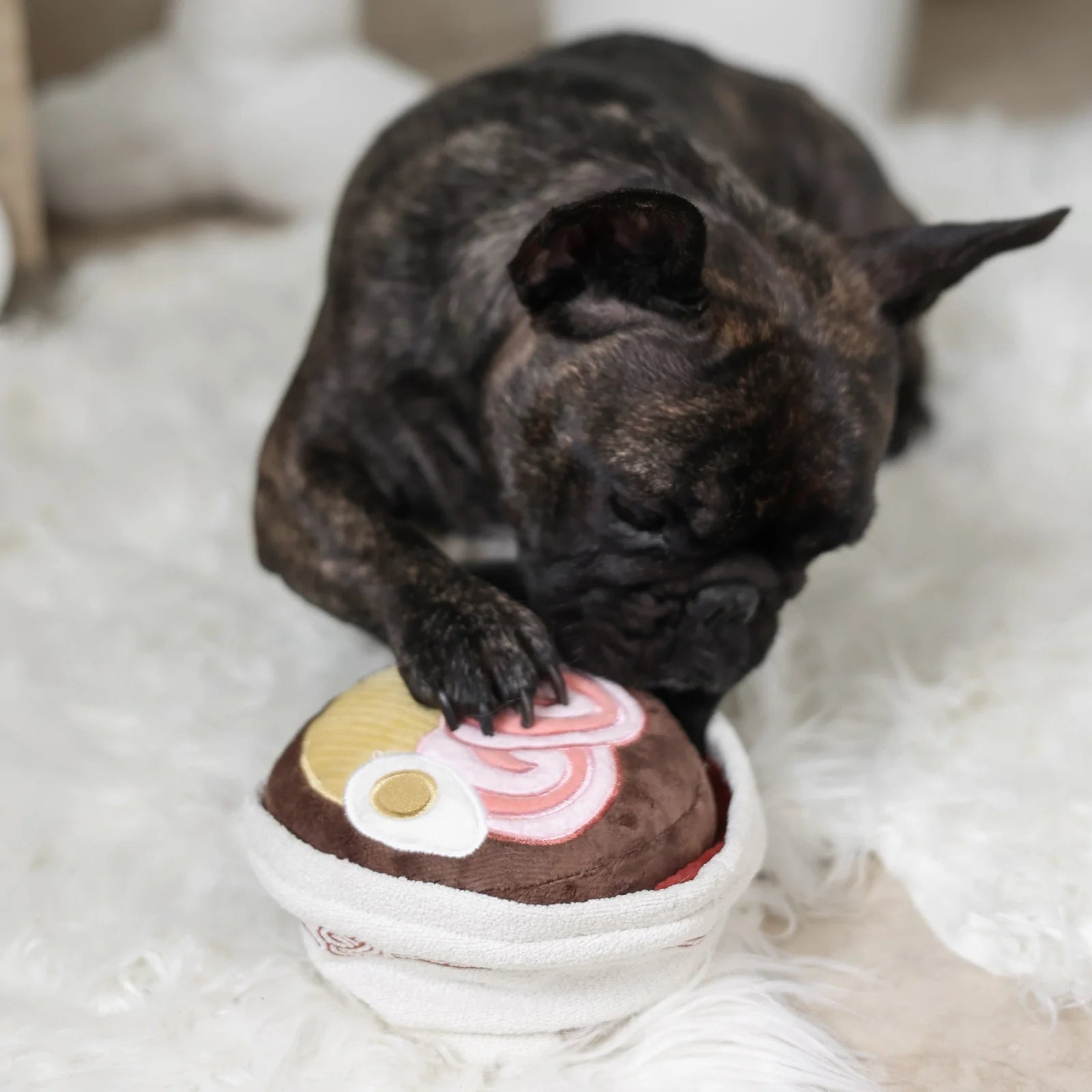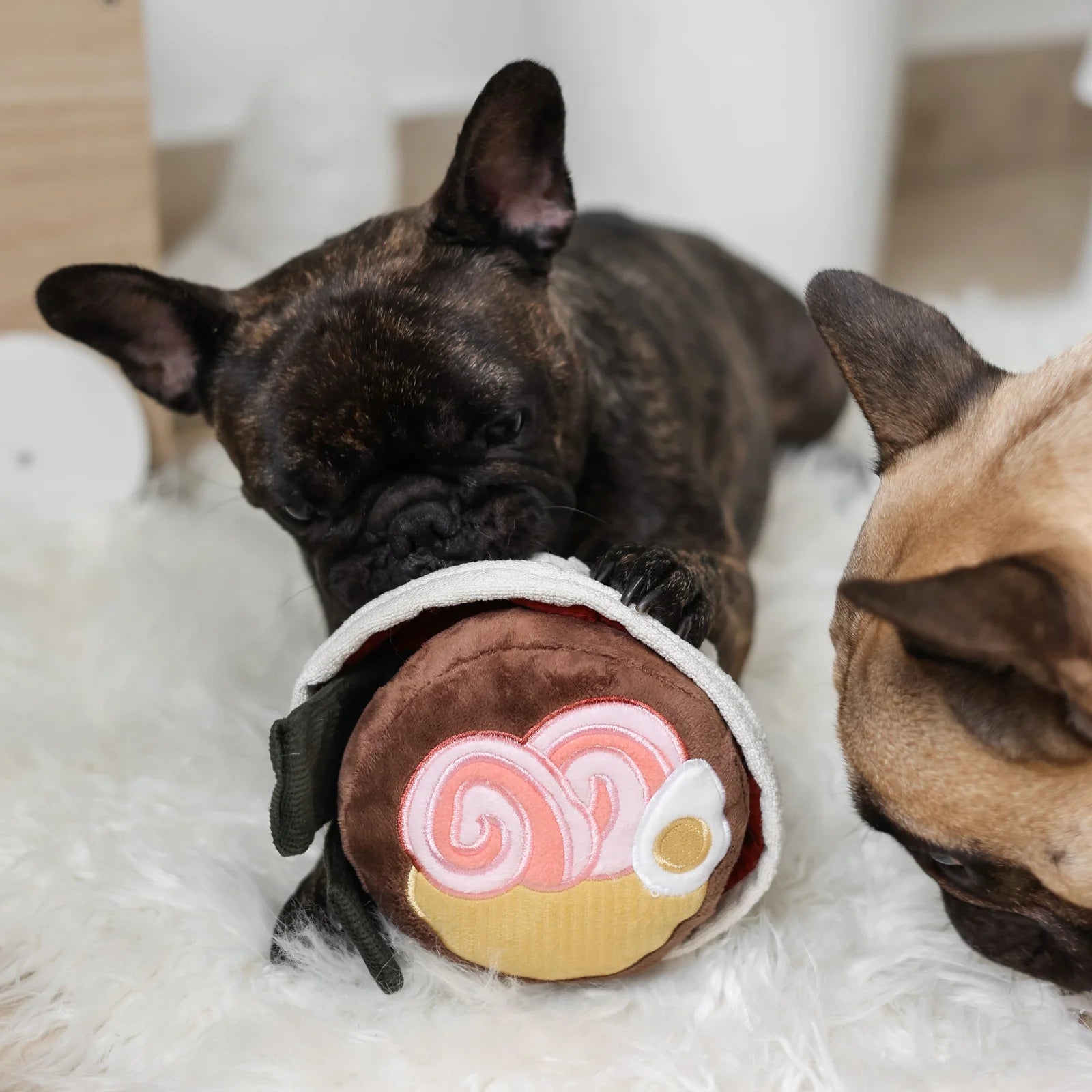 Offrez à votre chiot un moment de plaisir avec le jouet de fouille RAMEN ! Cet adorable jouet interactif est rempli d'une base de nouilles souples avec tout autour assez de place pour cacher des friandises de différentes tailles ! La base de nouilles est couineuse et les algues sur le côté sont froissées. Il est parfait pour divertir et occuper votre petit gourmand à quatre pattes.