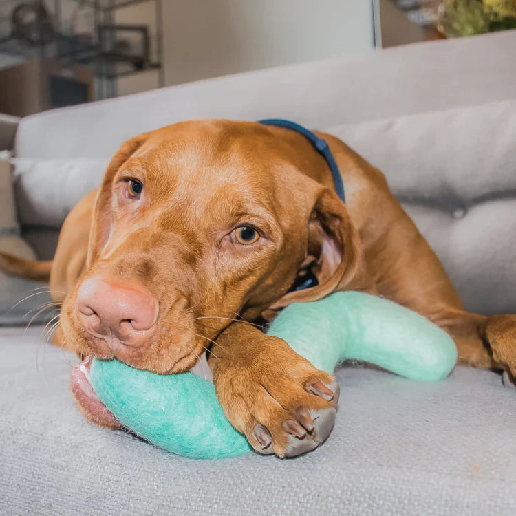 Fabriqués à la main par une coopérative de femmes artisans talentueuses au Népal, ces jouets en feutre sont teintés naturellement et les fibres (non toxiques) sont donc digestes. C'est un excellent jouet pour garder les dents de votre chien propres. Parfait pour tous les types de mordeurs et de mâcheurs pour 3 types de jeu : mâcher, lancer et tirer.
