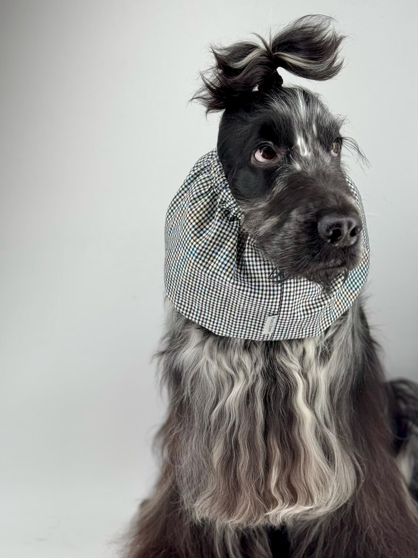 Snood pour chien en coton à petits carreaux, fabriqué à la main.