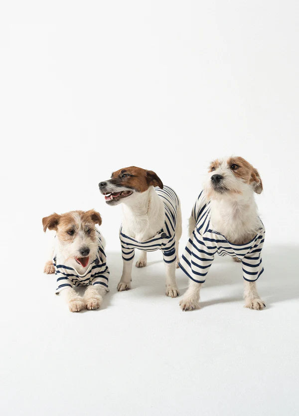 Confectionnée dans notre iconique coton cardé, la Toutounière allie l'histoire et la tradition de SAINT JAMES à une pièce mode, un vrai gimmick stylistique. Imaginée et fabriquée dans nos Ateliers normands, situés à quelques encablures du Mont-Saint-Michel c'est une vraie déclaration d'amour à nos racines, twistée par une touche de légèreté et de fun. Pour parfaire votre allure, osez le total look et choisissez de porter votre Méridien ou votre Méridame Ecru/Marine lors de vos sorties avec votre compagnon à quatre pattes.